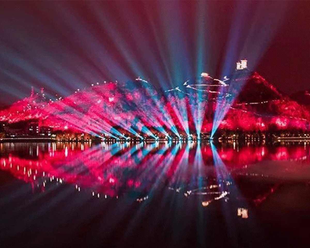 浩洋燈光璀璨點(diǎn)亮貴州安順虹山湖,以藝術(shù)與科技的完美融合打造大型山水湖景燈光秀《明鑲西秀 意寫江南》