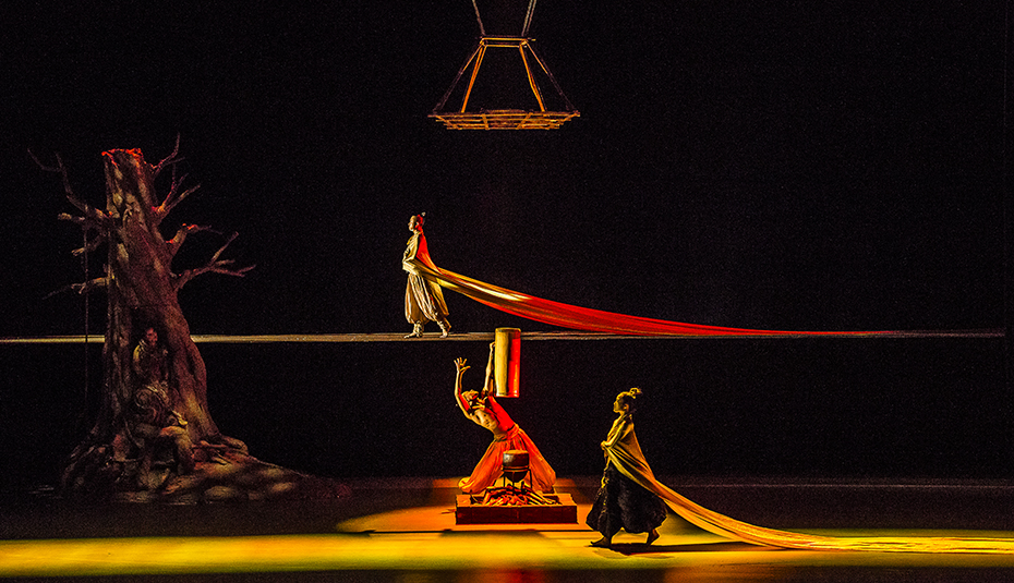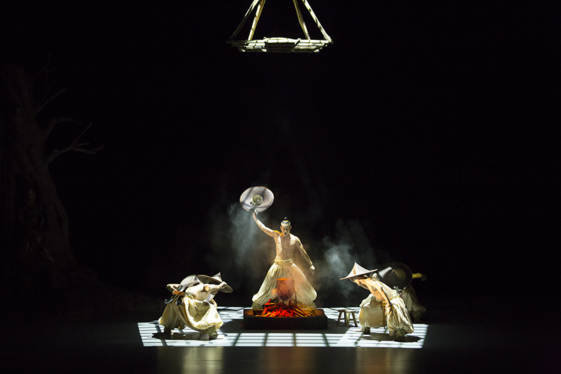 《巫卡調恰》的漢語意思是外婆的歌謠,這部舞蹈詩的創(chuàng)作植根于當?shù)孛缱逦幕?,又拓展到整個苗族社會,通過巫卡(外婆)吟唱古歌這一主線,詮釋了苗族遷徙史以及苗族社會生活的各種習俗,具有強烈形式感和邏輯性。