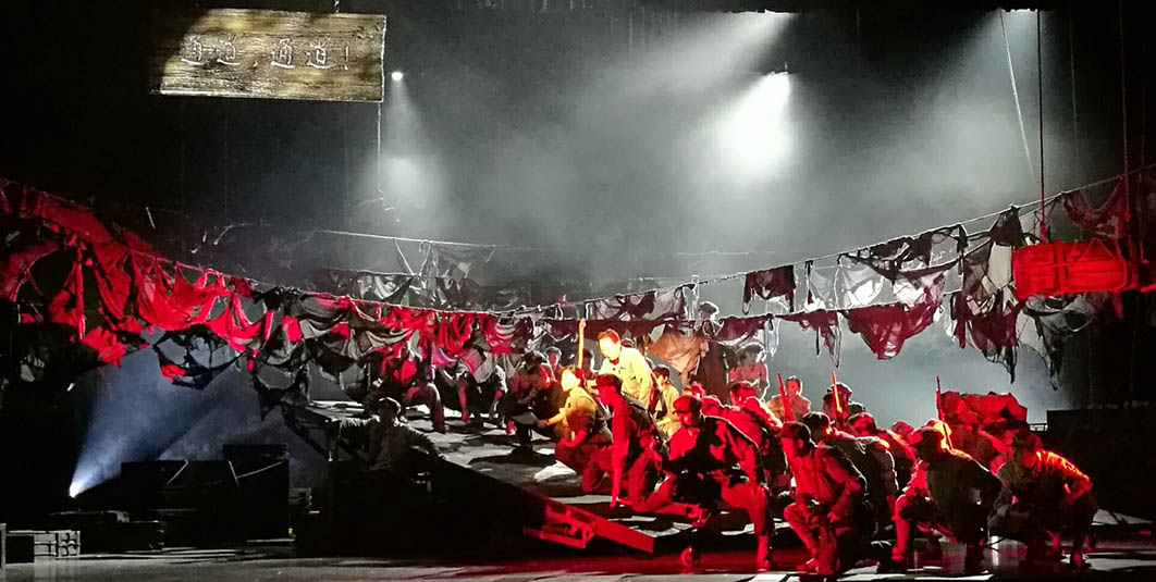 為紀念紅軍長征勝利80周年,軍委政治工作部話劇團聯(lián)手中共成都市委宣傳部創(chuàng)作排演的敘述體話劇《從湘江到遵義》9月28日在京成功首演。該劇由著名導演宮曉東執(zhí)導,特邀國內(nèi)著名燈光設計邢辛擔任燈光設計、著名編導孫涓涓任形體設計。浩洋電子革命性劇院式電腦燈V1000P、內(nèi)置兩套可任意切換光學系統(tǒng)的三合一全能王電腦燈G12 HYBRID和頂級高顯色性電腦搖頭切割燈V3000P等一大批高品質(zhì)特寶麗燈光傾情獻力,為該劇成功首演保駕護航。