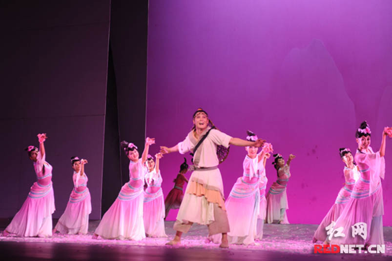 舞劇《桃花源記》以田園詩(shī)人陶淵明彈奏無(wú)弦琴開(kāi)篇,將陶淵明對(duì)世事煩惱的疏解與漁郎不幸的遭遇及其偶遇桃花源、再尋桃花源的傳奇經(jīng)歷進(jìn)行融合,使人們通過(guò)該劇可以體味到當(dāng)時(shí)民生的艱難以及追求自然和諧理想社會(huì)的深層表達(dá)。該劇是2015年度國(guó)家藝術(shù)基金資助項(xiàng)目、湖南省委宣傳部項(xiàng)目資助、湖南省文化廳文藝創(chuàng)作專項(xiàng)扶持資金項(xiàng)目。