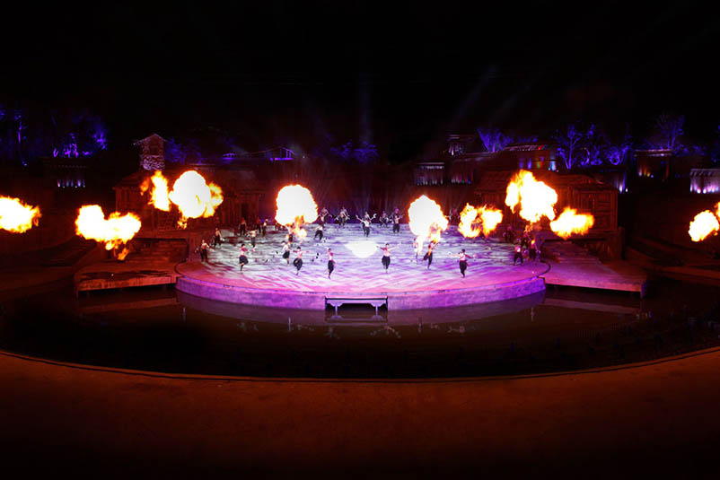 《阿惹妞》是目前中國第一臺火秀實(shí)景劇,該劇全長60分鐘,共分為5個篇章,從民族源起的腳步展開,講述了阿惹妞情與愛的生命畫卷。該劇以“火”作為彝族的生命圖騰貫穿始終,呈現(xiàn)了“火”作為一個民族情感的載體而展開的生命傳奇,具有濃厚的彝族文化風(fēng)情。