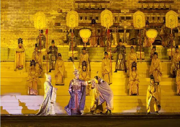 大型藏族實(shí)景劇《文成公主》主要講述文成公主入藏歷經(jīng)艱難的征途和曲折起伏的心路歷程,演繹大唐盛世的愛情傳奇,傳唱漢藏和美的動(dòng)人史歌。該作品分為“大唐之韻”、“天地梵音”、“藏舞大美”、“藏舞大美”及“藏舞大美”五幕,深度融入漢藏歷史文化、民族風(fēng)俗、自然景觀等,引入了大唐歌舞和流傳久遠(yuǎn)的藏舞、藏戲、佛號(hào)念唱等,通過人工舞臺(tái)與自然山水的結(jié)合,用高科技的手段呈現(xiàn)非物質(zhì)文化遺產(chǎn),把戲劇、音樂、舞蹈和現(xiàn)代舞美手段融為一爐,構(gòu)成華美樂章。