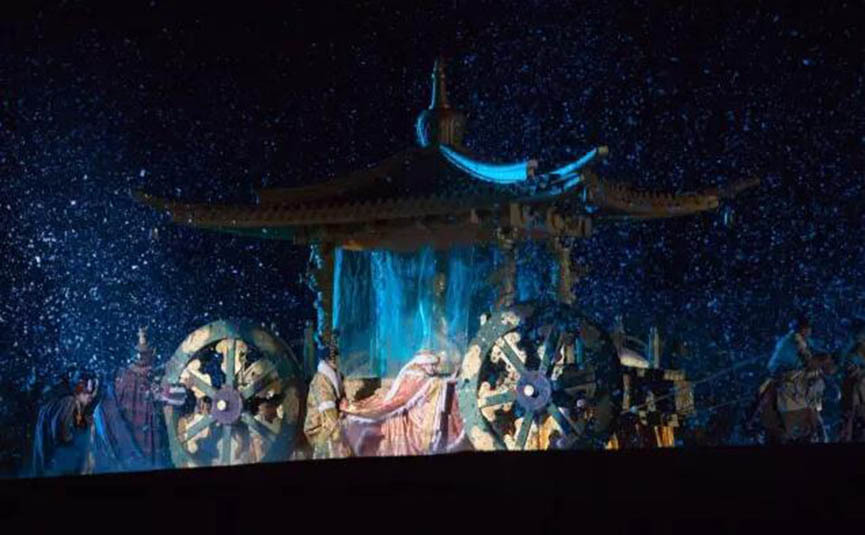 《文成公主》 藏文化大型史詩劇一直在不斷地進(jìn)行創(chuàng)新和升級,在燈光方面,劇組使用更多元化的色彩,營造出華美而奇幻的舞臺(tái)效果,并運(yùn)用更多的高科技手段,使演出效果更驚艷、更富有傳奇色彩。例如在文成公主碎寶鏡這一段,將通過特殊的舞美燈光設(shè)備,將寶鏡摔在地上的場景表現(xiàn)得更逼真,寶鏡碎片飛起來的場景,也能夠通過高科技表現(xiàn)出來,現(xiàn)場感更強(qiáng)。