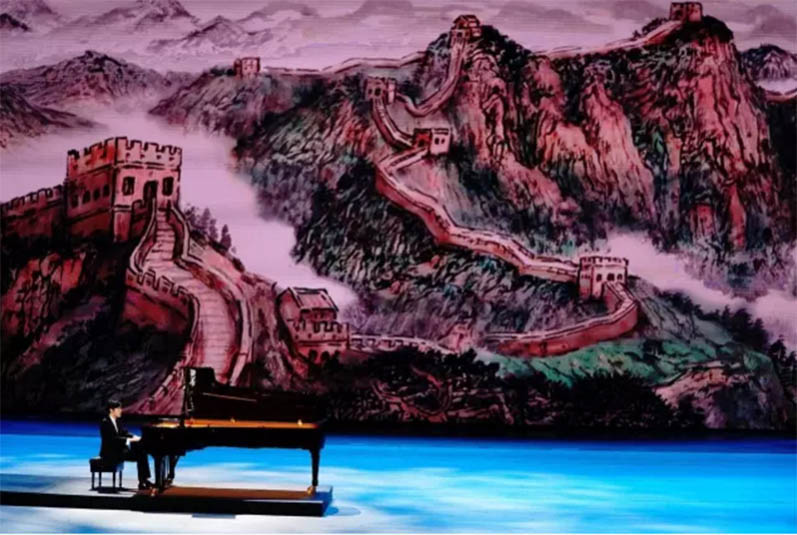 整場文藝晚會具有東西方交融、歷史和未來交融、傳統(tǒng)和科技交融以及不同藝術(shù)間交融,多種交融的觀點和方法始終貫徹到每個主題。器樂和戲曲的生動表演展示中華文化底蘊和輝煌歷史,青花絲綢與芭蕾藝術(shù)結(jié)合、鋼琴與繪畫相結(jié)合體現(xiàn)中外藝術(shù)有機融合和創(chuàng)新,彰顯文化自信,聚盛世中國之璀璨,展“一帶一路”之風(fēng)采。