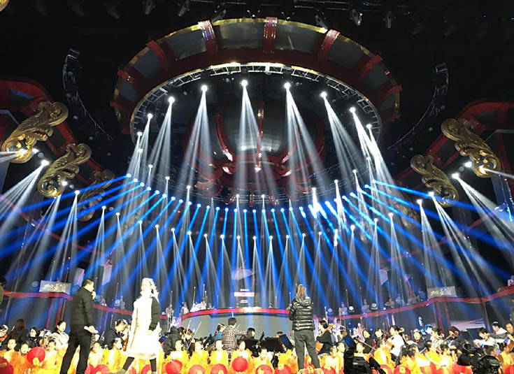 遼寧衛(wèi)視春晚是「省級春晚業(yè)界第一」美名的最老資歷綜藝晚會,其收視率可媲美央視春晚,是歷年春節(jié)期間電視觀眾的收視年俗。今年是浩洋燈光又一年傾力服務(wù)于遼寧衛(wèi)視春節(jié)聯(lián)歡晚會,用燈類型和燈具數(shù)量創(chuàng)歷史新高,面光和頂光的鋪光換色和照明大量選用了浩洋頂級切割燈V3000P和染色燈V2000W,為舞臺打造明亮舒適、還原度高的用光保障;150臺轟天炮光束燈G10b和鉑金光束燈G9b,刺穿LED大屏的光幕,讓舞臺動感十足,空間感爆棚;高亮LED搖頭染色燈OK190z讓舞臺元素更加豐富多彩。憑借浩洋設(shè)備在舞臺上極具表現(xiàn)力的燈光效果和出色的穩(wěn)定性、一致性,以及浩洋全程響應(yīng)的全心服務(wù),獲得了遼寧省電視臺給予的高度肯定和贊許。