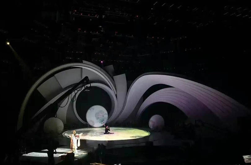 為更好地契合中秋節(jié)溫馨團(tuán)圓的氛圍,湖南衛(wèi)視2016中秋之夜緊扣“花好月圓”的主題,在舞臺上勾勒花瓣綻放的造型,打造了一個“小而美”的精致舞臺,花瓣的中心恰似一輪中秋月,一束束的燈光從圓月的輪廓上放射出來,成為整個舞臺的焦點。