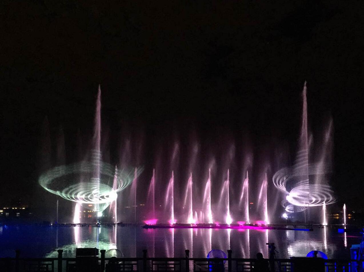 演出位于銀川閱海灣的一個(gè)核心區(qū),其擁有約3000㎡的漂浮平臺作為主表演區(qū)域,包含了機(jī)械、主體噴泉、投影激光,還有燈光音響等一系列設(shè)備,前方還設(shè)有890㎡的水下舞臺作為演員的主舞臺。