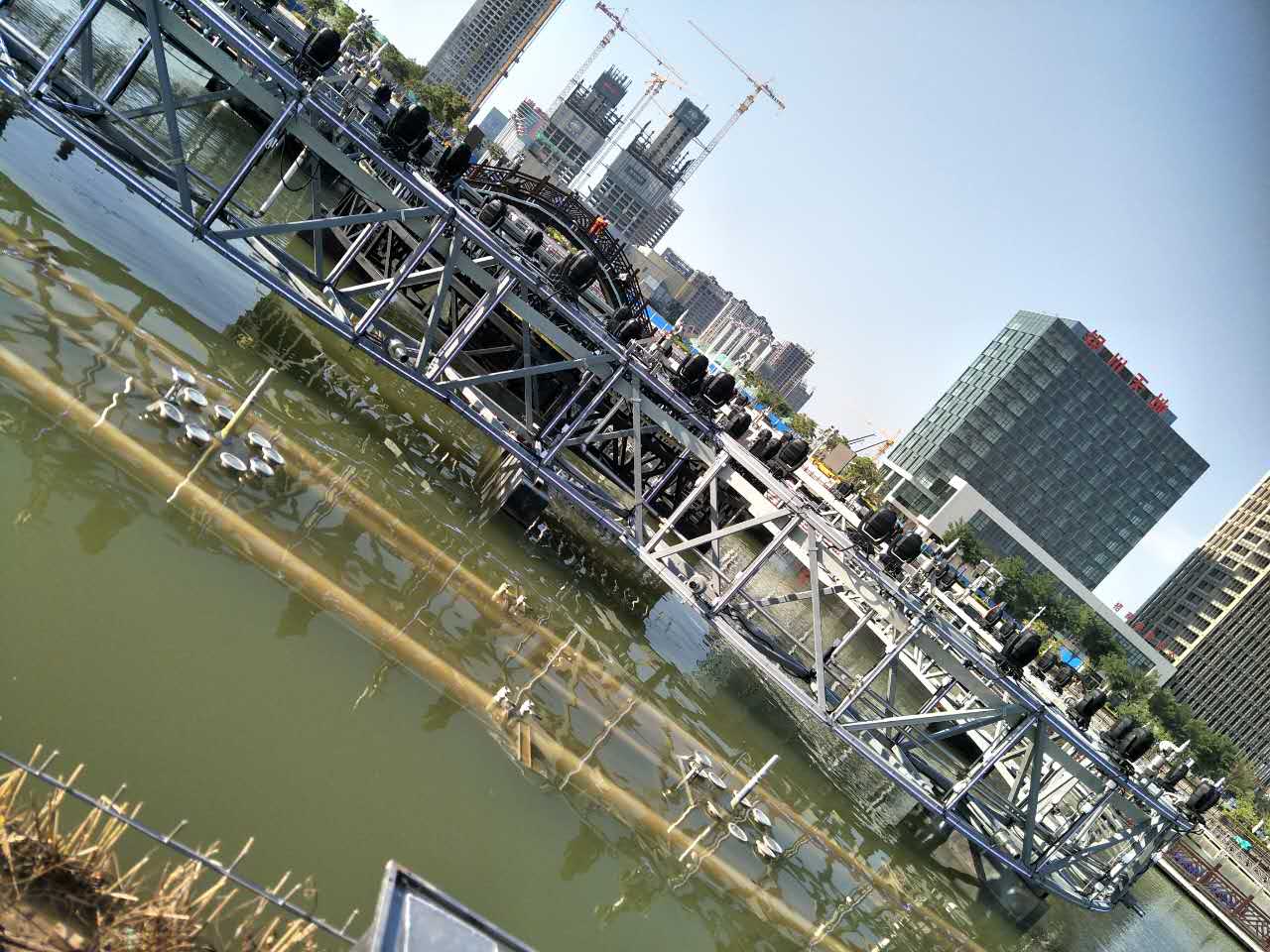 閱海灣中央商務(wù)區(qū)也利用湖內(nèi)的廊橋建造大型水上演藝中心和“夜游銀川”的燈光秀融為一體。游客可坐著船或在棧橋上,欣賞美輪美奐的演藝盛宴。