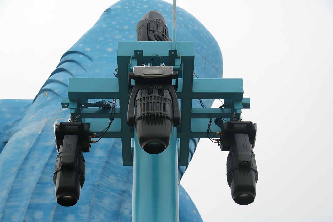在此次改造升級(jí)選用燈光設(shè)備中,浩洋電子從國(guó)內(nèi)多家燈光企業(yè)的激烈角逐中脫穎而出,“天外飛燈-FOS360”系統(tǒng)、IP65三合一全能王G20HYBRID IP等燈具最終被選定,遍布在長(zhǎng)隆海洋王國(guó)的中心湖、鯨鯊廣場(chǎng)等,以科技點(diǎn)亮這一場(chǎng)全新的大型夜場(chǎng)匯演,用炫酷的燈光效果與煙花匯演精彩地結(jié)合在一起。