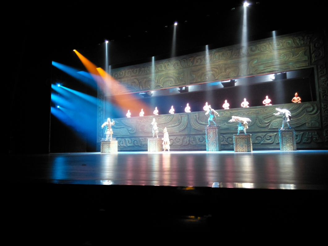 在《秦》秀燈光效果中,總制作著名燈光設(shè)計沙曉嵐采用獨特的燈光風(fēng)格,時而黑白調(diào),時而金碧輝煌,將大秀的感情色彩表現(xiàn)得淋漓盡致,再現(xiàn)大秦帝國的恢弘。