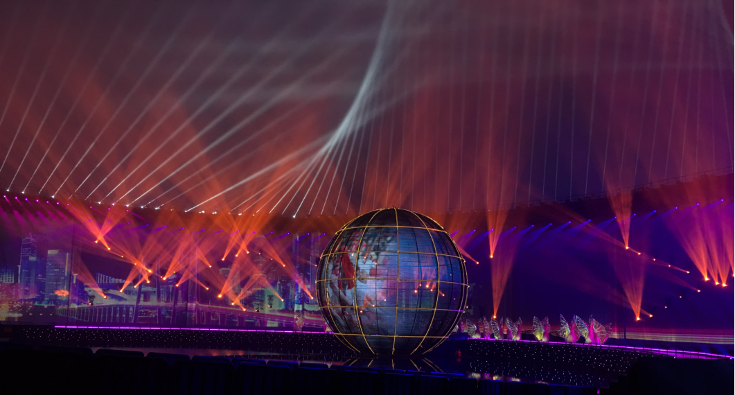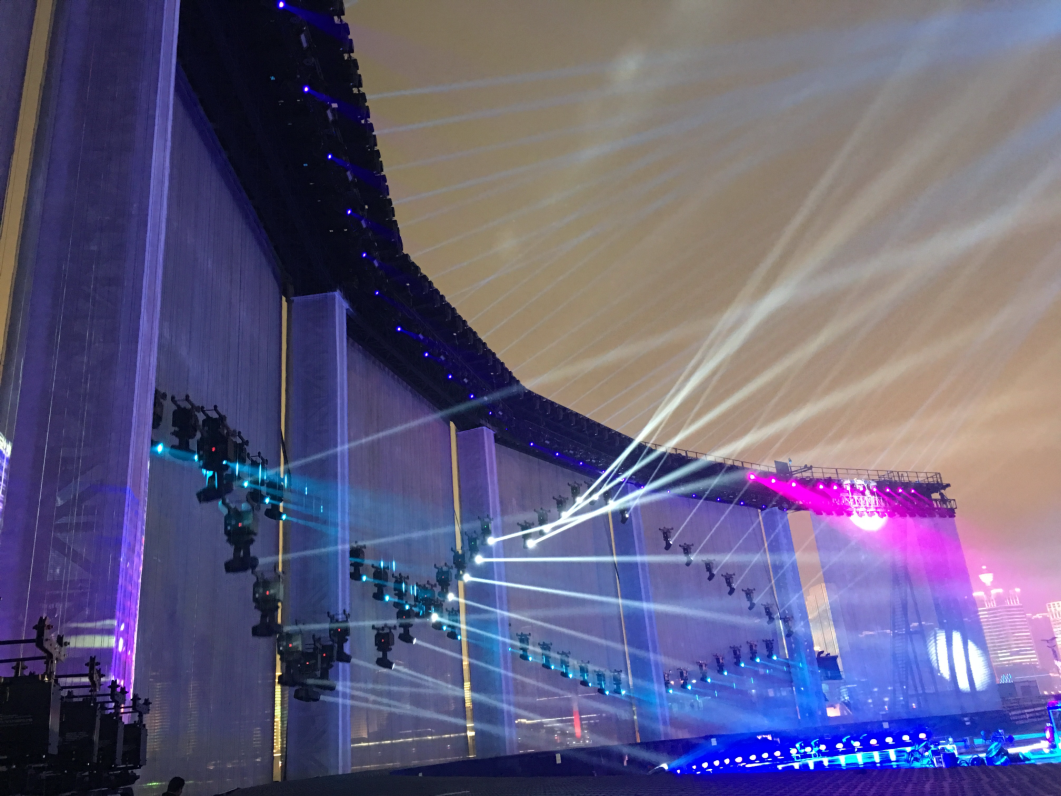 ? ? ? ?為迎接各方來賓,峰會于2018年6月9日夜間在青島奧帆中心舉辦了一場名為《有朋自遠方來》的燈光焰火藝術表演。浩洋電子作為國際領先的專業(yè)燈光設備供應商,為此次燈光焰火藝術表演提供了主要的專業(yè)優(yōu)質燈光服務,129套“浩洋智造”科技創(chuàng)新型飛燈系統攜LED染色燈OK190Z-RII、切割燈V3000P等多款高質量專業(yè)舞臺燈具再現國際級文藝演出舞臺,浩洋燈光用出色的燈光科技表現手段再創(chuàng)科技與文化的完美融合,穩(wěn)定高效地為高清電視轉播提供了全方位有力的支持。