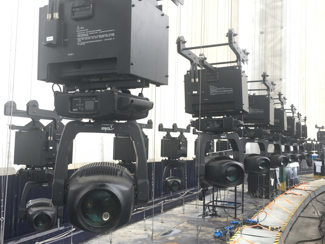 ? ? ? 特別在本次燈光焰火演出中,浩洋電子的飛燈系統依然成為了一大亮點,與眾不同的是,浩洋飛燈系統打破了“燈位不動,只有光在運動”的限制,讓電腦燈本身也運動起來,自由翱翔,實現從“光的運動”到“運動的光”著巨大的轉變。浩洋飛燈系統的研發(fā)是與2016年9月杭州G20峰會文藝演出《最憶是杭州》息息相關,當時的總制作人著名燈光設計沙曉嵐提出“舞蹈演員吊掛著威亞,從外湖飛入西湖演出舞臺”的設想,與合作方浩洋電子進行了大量的研發(fā)試驗,但由于西湖的地理位置限制,這個創(chuàng)意未能實現,研發(fā)的成果也保留了下來,最終在2017年的央視春晚桂林分會場實現了浩洋飛燈系統的全球首秀。在本次上海合作組織青島峰會燈光焰火藝術表演中,浩洋飛燈系統以創(chuàng)新科技化燈光震撼獻力國家重要演出活動,勾勒出一幅科技燈光與文化相融合的視覺美景。