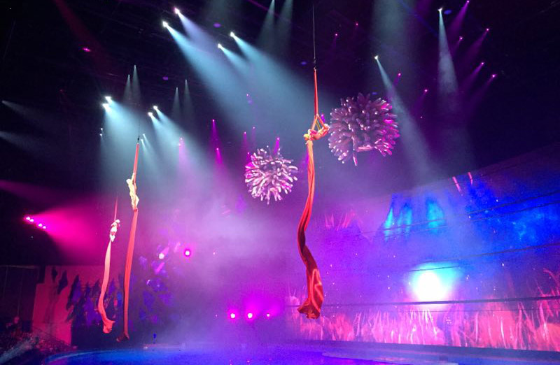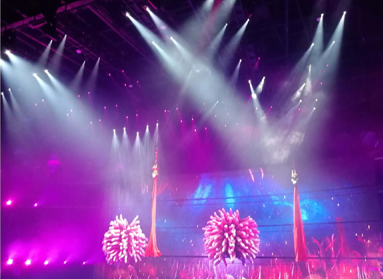 演出中,浩洋電子全能王三合一電腦燈G12HYBRID、切割燈V3000P、圖案燈V2500S、LED PAR燈A51-E近400臺(tái)專業(yè)舞臺(tái)燈光設(shè)備為現(xiàn)場(chǎng)助陣。浩洋燈光設(shè)備投射出炫目的燈光,與現(xiàn)場(chǎng)的煙霧、水面特效、無(wú)人機(jī)、各種大型自動(dòng)化舞美機(jī)械在內(nèi)的國(guó)際頂尖舞臺(tái)技術(shù)相互配合,融合水中芭蕾、空中藝術(shù)、花式跳水等眾多表演元素,共同呈現(xiàn)原創(chuàng)鉅制,還原了傳說(shuō)中神秘古老的“亞特蘭蒂斯”世界。