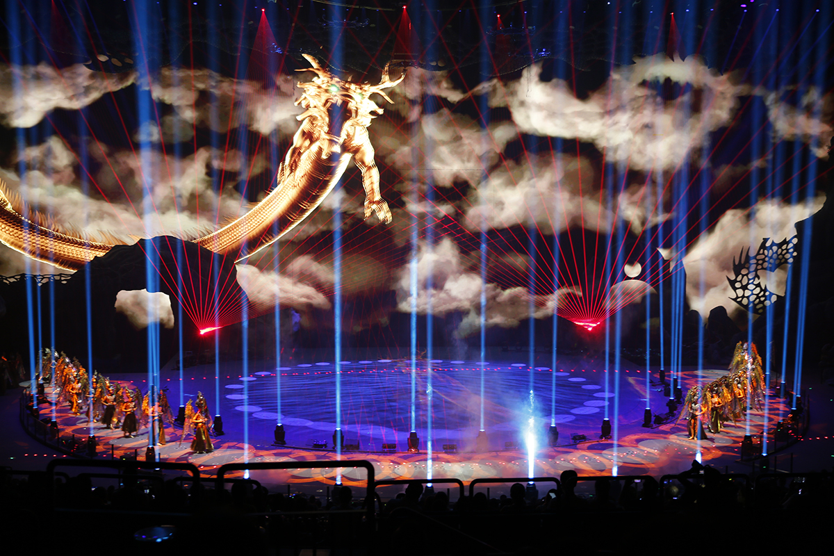《龍秀》把傳統(tǒng)馬戲與舞臺(tái)表演劇相結(jié)合,這是對(duì)傳統(tǒng)馬戲的一次新的突破與嘗試,這堪稱長(zhǎng)隆國(guó)際演藝的又一里程碑新巨作。同時(shí),《龍秀》也是一場(chǎng)國(guó)際大秀,融合了雜技、舞蹈、魔術(shù)、極限運(yùn)動(dòng)、聲樂、花樣游泳等多種藝術(shù)門類,匯聚了來(lái)自22個(gè)國(guó)家、30多支團(tuán)隊(duì)、300多名各個(gè)國(guó)家優(yōu)秀的馬戲藝術(shù)家共同演繹這出大制作。