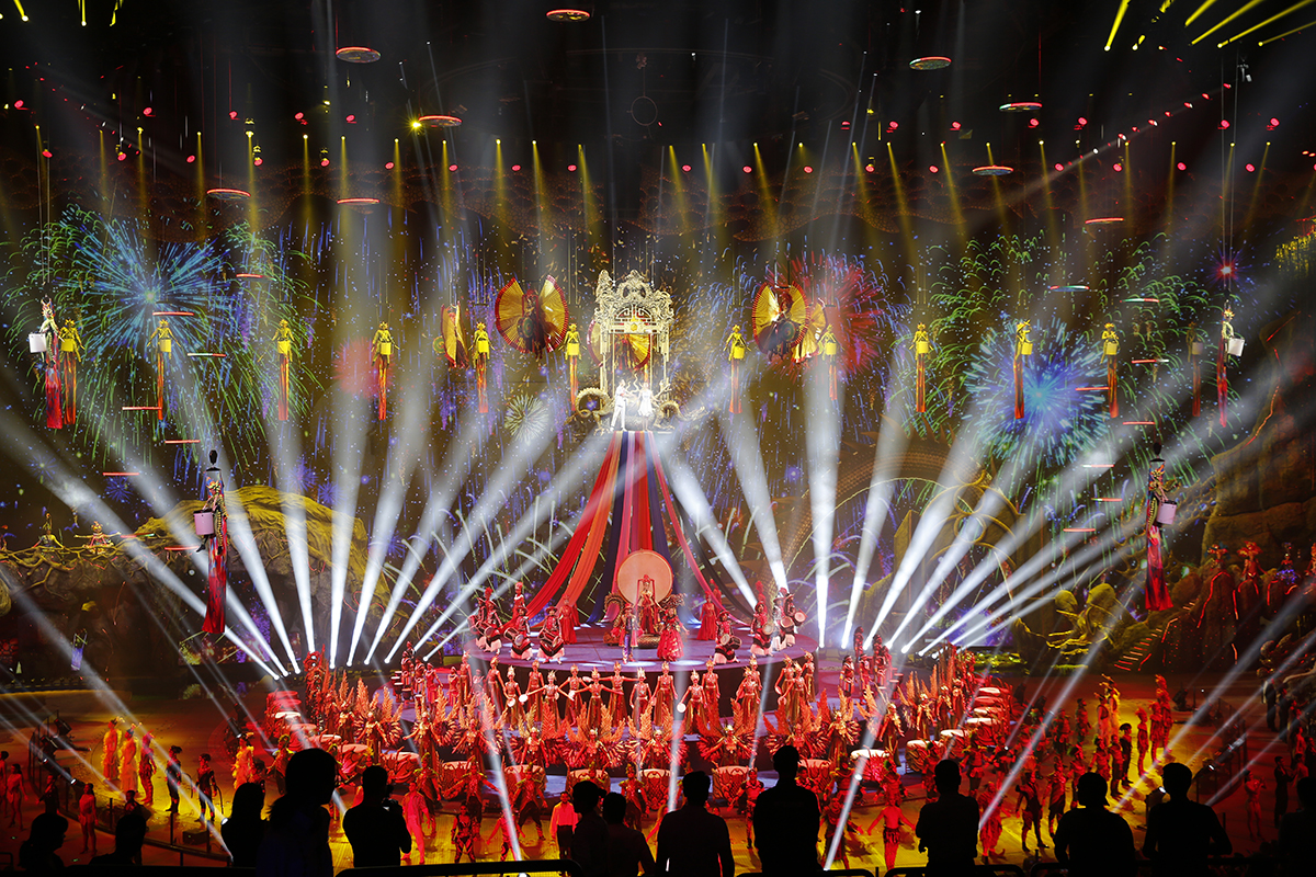 作為全新的文旅地標(biāo),長(zhǎng)隆劇院設(shè)計(jì)體現(xiàn)出智能科技的前沿性和實(shí)用性。現(xiàn)場(chǎng)使用了實(shí)現(xiàn)實(shí)時(shí)升降的智能電腦燈具,其中浩洋電子傾力支持了大部分燈具,其中建筑照明燈GSARC DOT M系列提供了180臺(tái),以科技之光點(diǎn)亮這場(chǎng)全新的大型馬戲,運(yùn)用多屏幕的全景環(huán)繞技術(shù)將極致地將舞美、燈光、音響等元素重新定義整合,使劇情氛圍更加緊湊。
