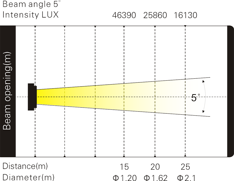 光斑角度:5°,制造接近平行的的特殊光束效果