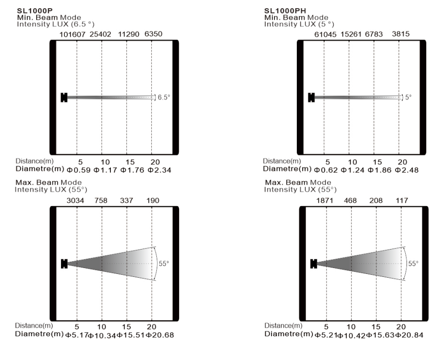 變焦范圍:6.5°-55° (SL1000PH: 5°-55°)