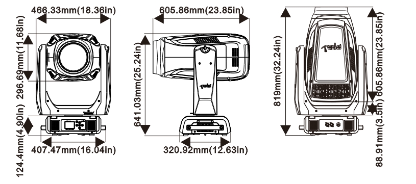 切割盤:一組由4個切角片組成可控制的光斑切角系統(tǒng),整個切角系統(tǒng)可做±90°旋轉