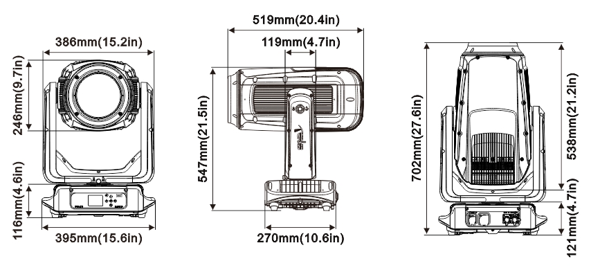 可從控臺完成更改DMX地址碼,機器重設等功能